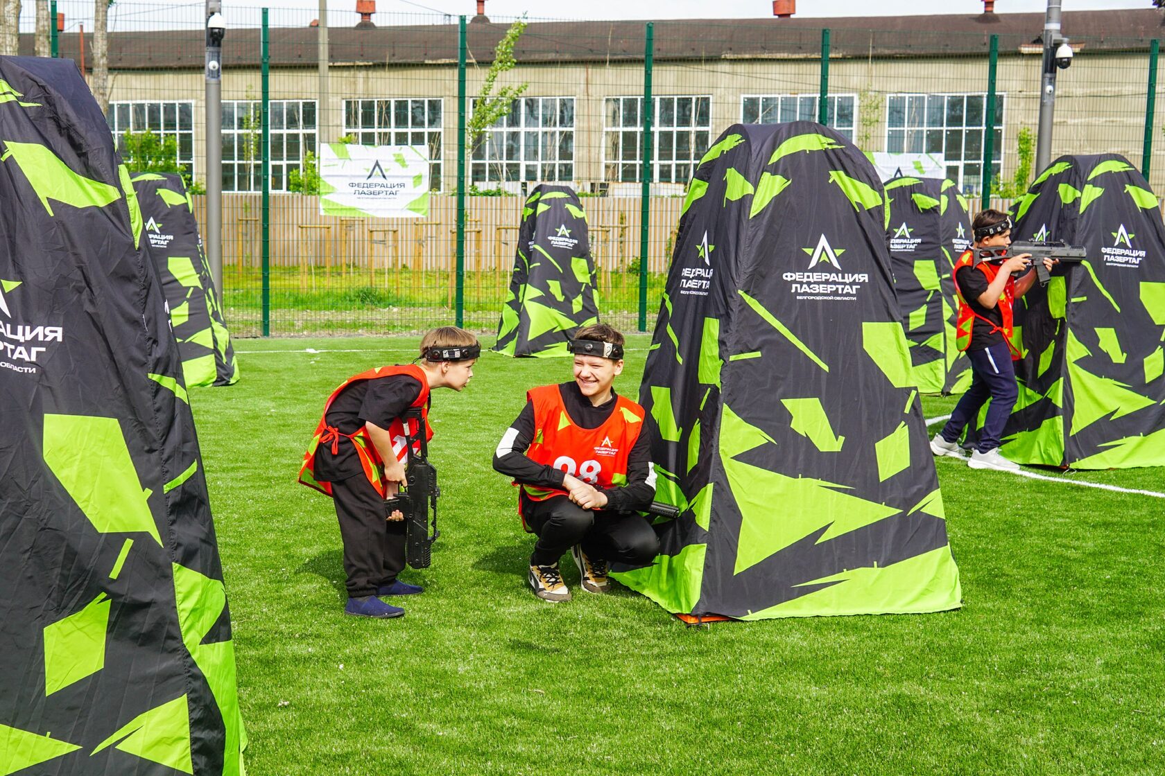 Пространство рядом с центром оснащено площадками для футбола, стритбола, воркаута и лазертага.